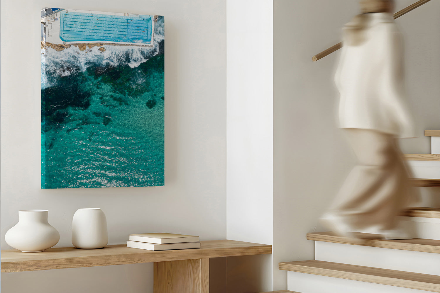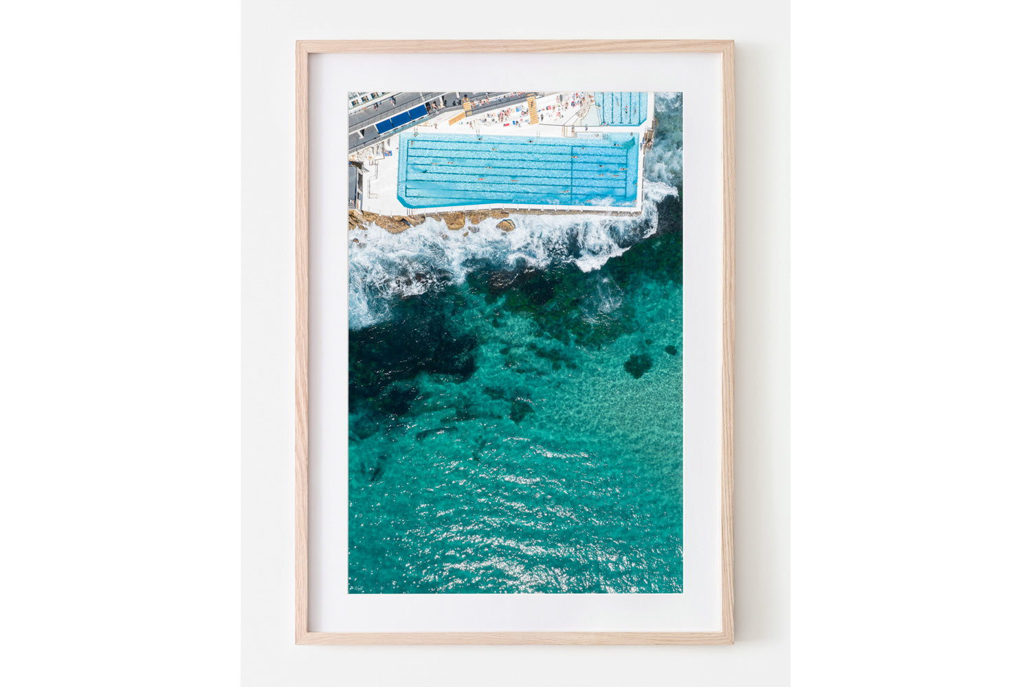 Bondi Breaker, is a top-down aerial photograph showcasing some of the cleanest water conditions ever. The wave crashes into the pool.