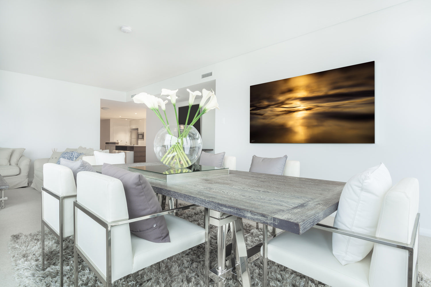 The process is extraordinary with the image printed on the highest quality metallic pearl fine art paper and then applied to a 4.5mm thick polished sheet of acrylic, finished with Dibond aluminium composite panel on the back.