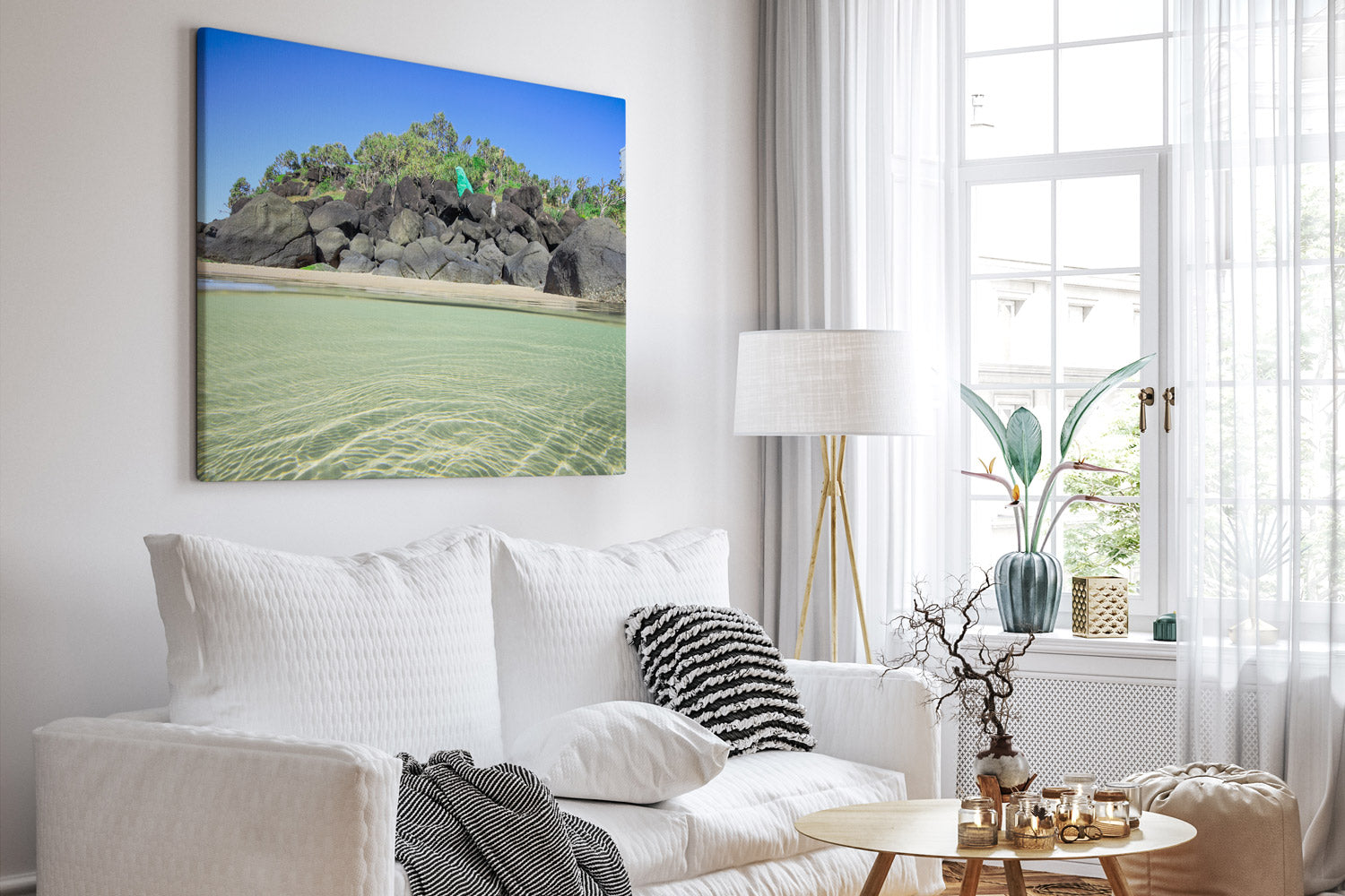 Each canvas is then sprayed with a liquid laminate, which not only enhances colour but also protects against UV fading, dust, minor scratches & water. Then expertly gallery wrapped over a stretcher bar made from quality Australian pine & finished with a tape seal backing & plastic coated hanging wire.