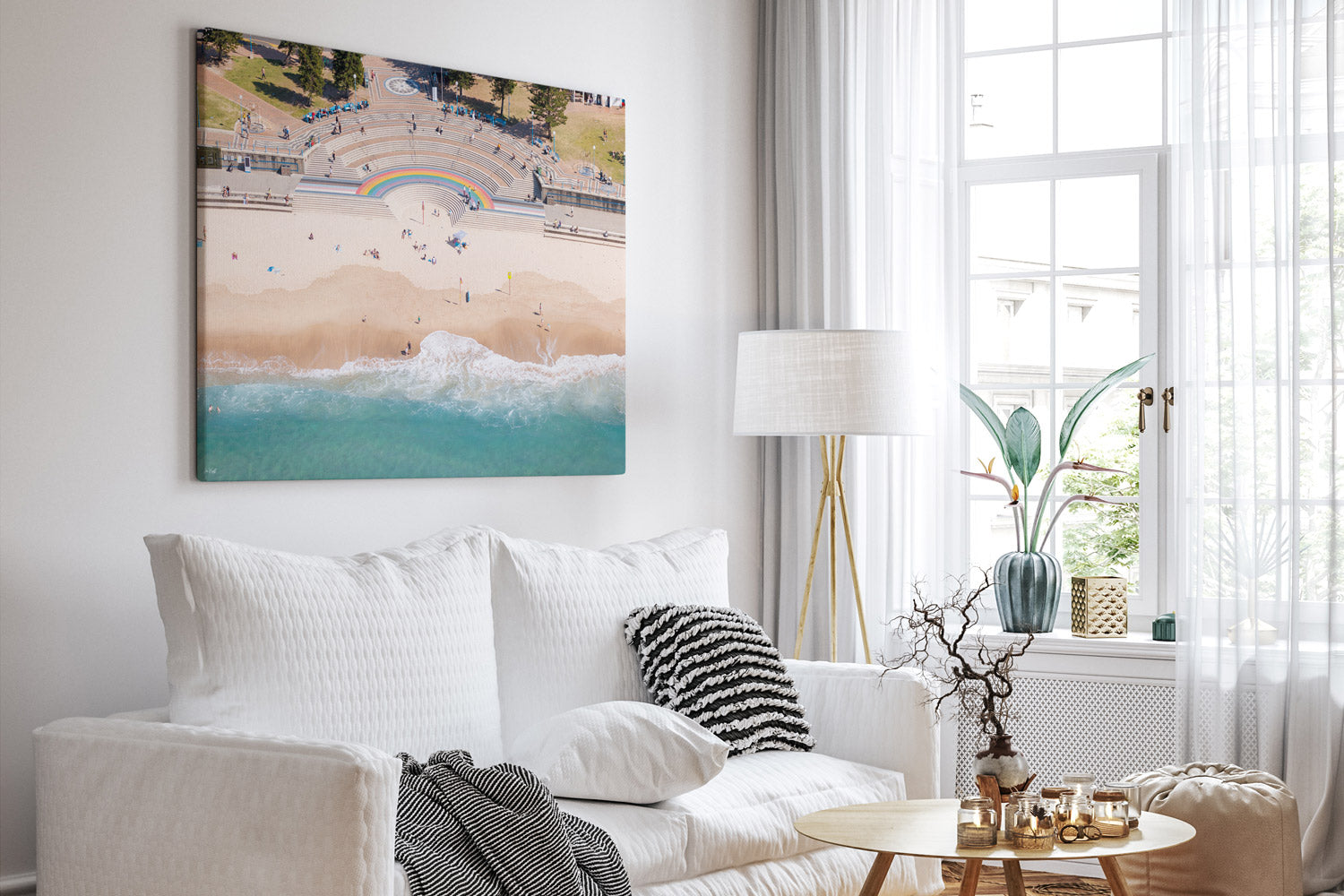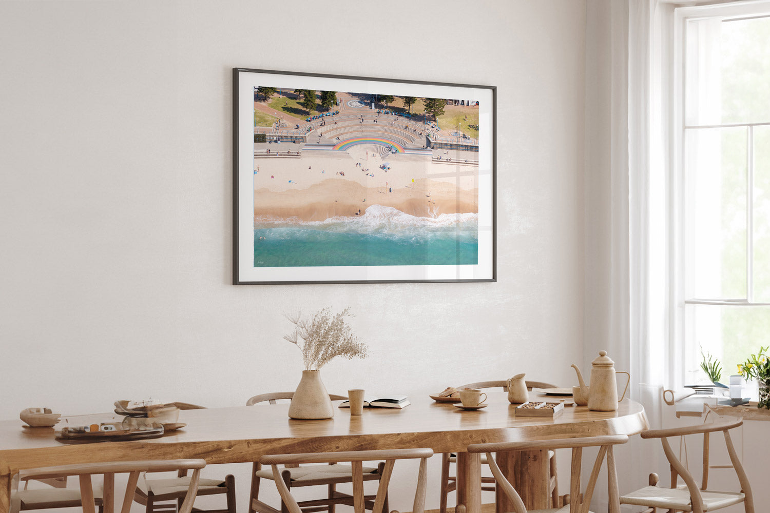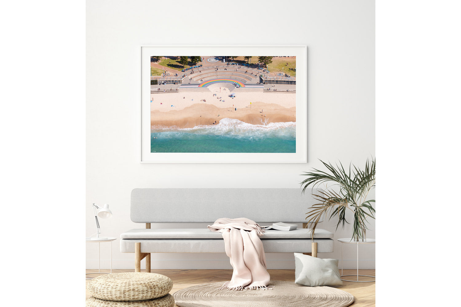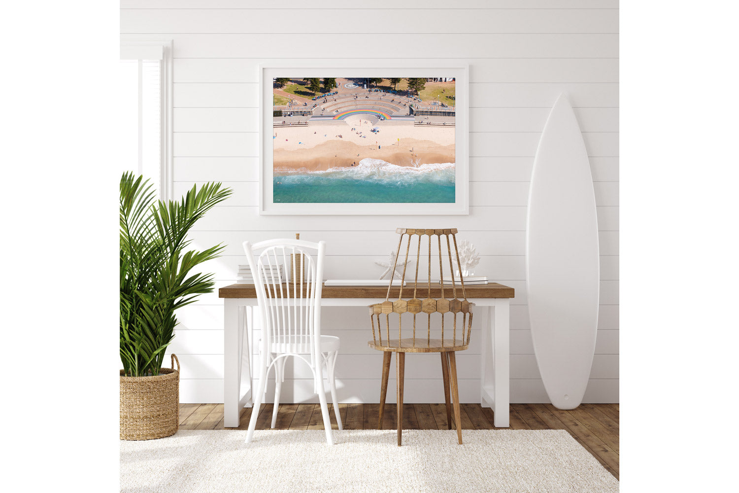Coogee Beach Rainbow I captures a magical moment over Coogee as a rainbow arcs above the coastline. This fine art photograph brings together the soft colours of the rainbow, the turquoise water, the sandy shore, and the warm character of Coogee’s beachfront. The scene feels uplifting and serene, offering a rare blend of coastal charm and atmospheric beauty.