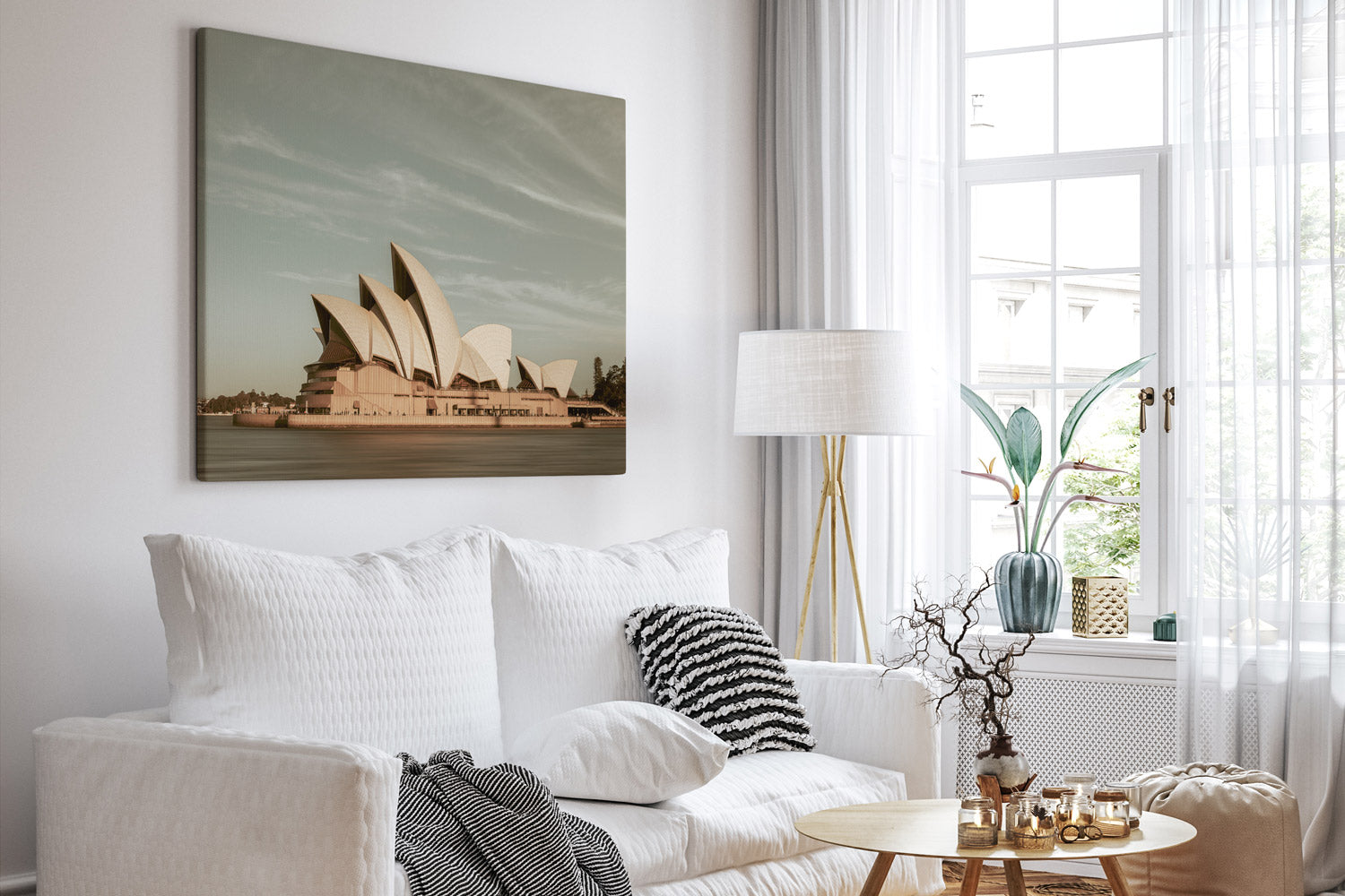 Sydney Opera House retro is photographed and edited to mimic an older more retro feel. The warm golden light of the afternoon sun casts orange hues on the Opera House, brining for a nice interpretation of an iconic building.