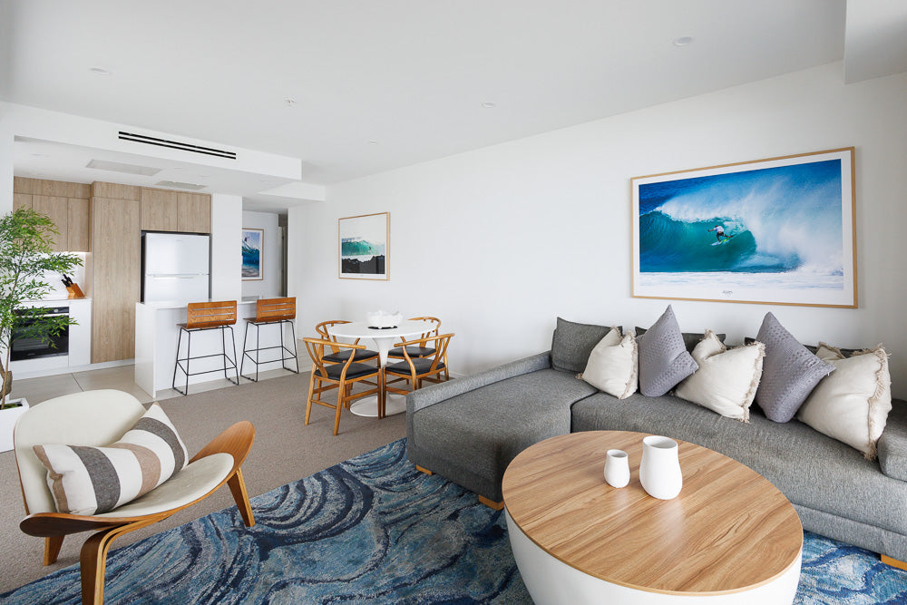 This was a special little project where we were commisioned to provide several prints per unit in a coastal style. This involved having a small cut out at the bottom of the matboard with details of when the image was captured and the location.