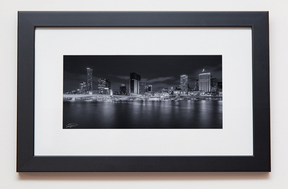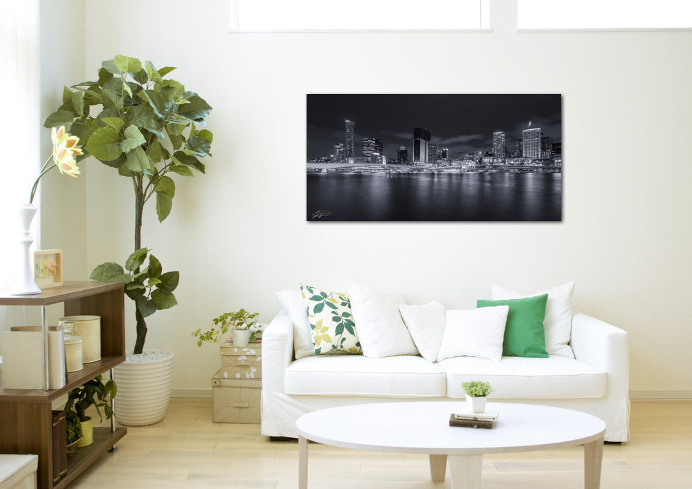 Brisbane city, QLD Australia – Black and White – Also taken during the G20 summit whilst Colour me Brisbane was running, however I decided to capture the black and whites of this beautiful city. The lights from the 30,000 led’s lit up the side of the buildings illuminating them and adding that extra special touch. A 2:1 ratio panoramic photograph will look incredible framed in a black frame with black matte or a large stretched (approx) canvas 2x1 meter.