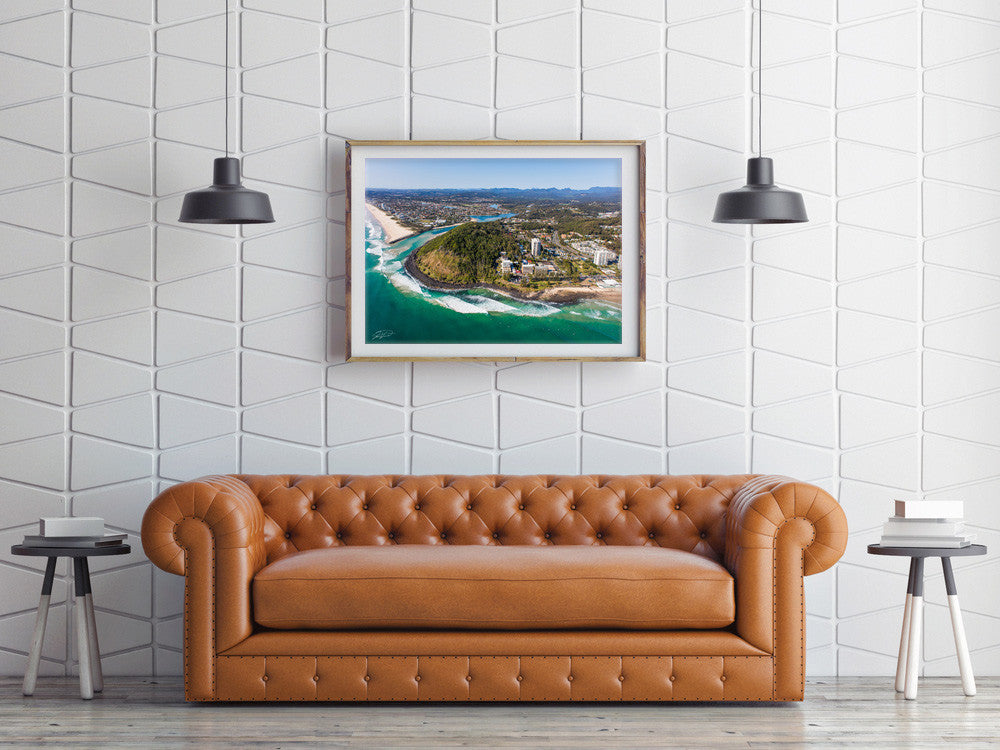 This piece of art looks best when printed large as the details in the headland and surfers come to life.
