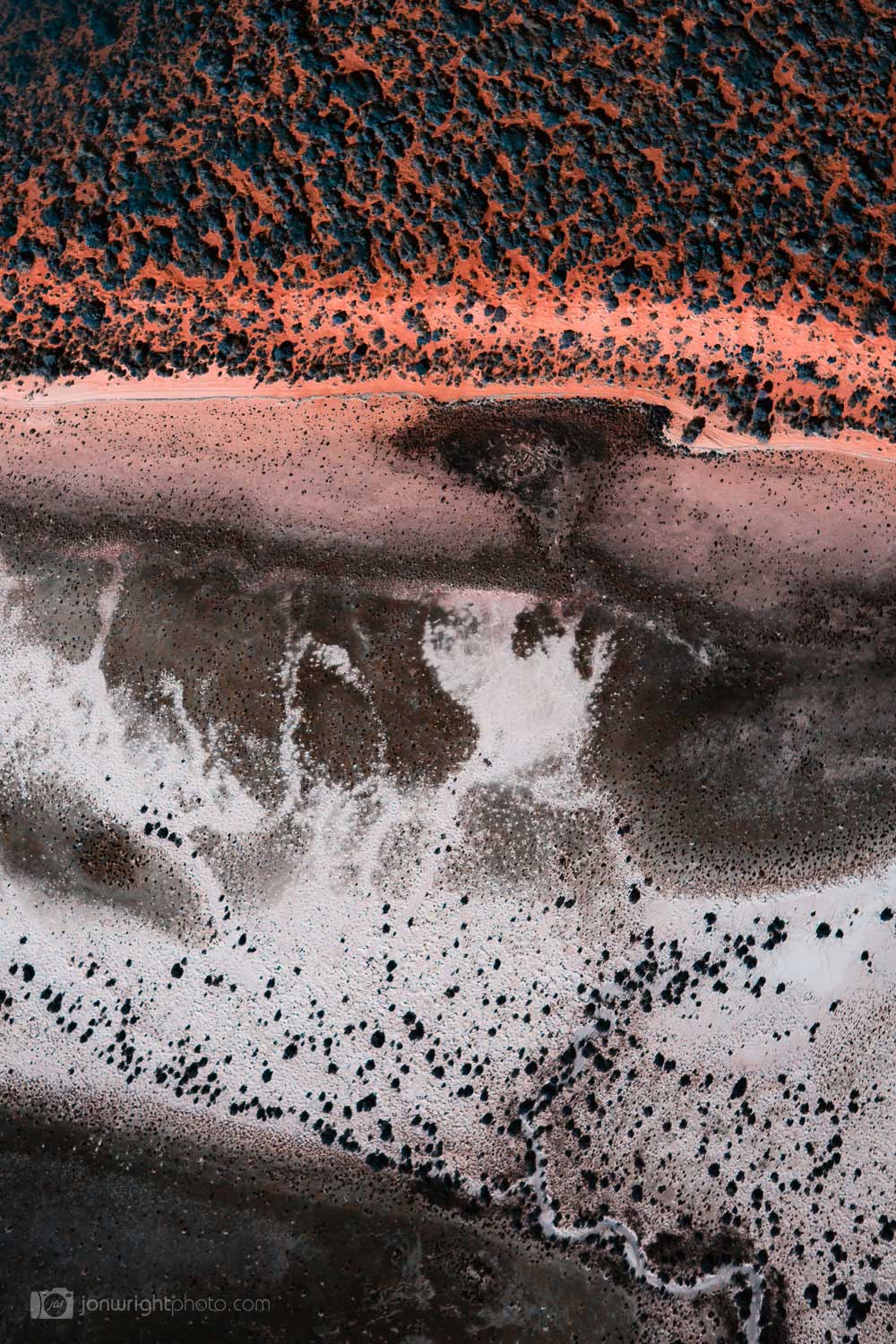 One of my favourite artworks to date! Cherry ripe is captured whilst flying at 300 ft in a plane with the doors off whilst I hang outside the window flying over dried lakes in Western Australia. The red sands meet with interesting textures.