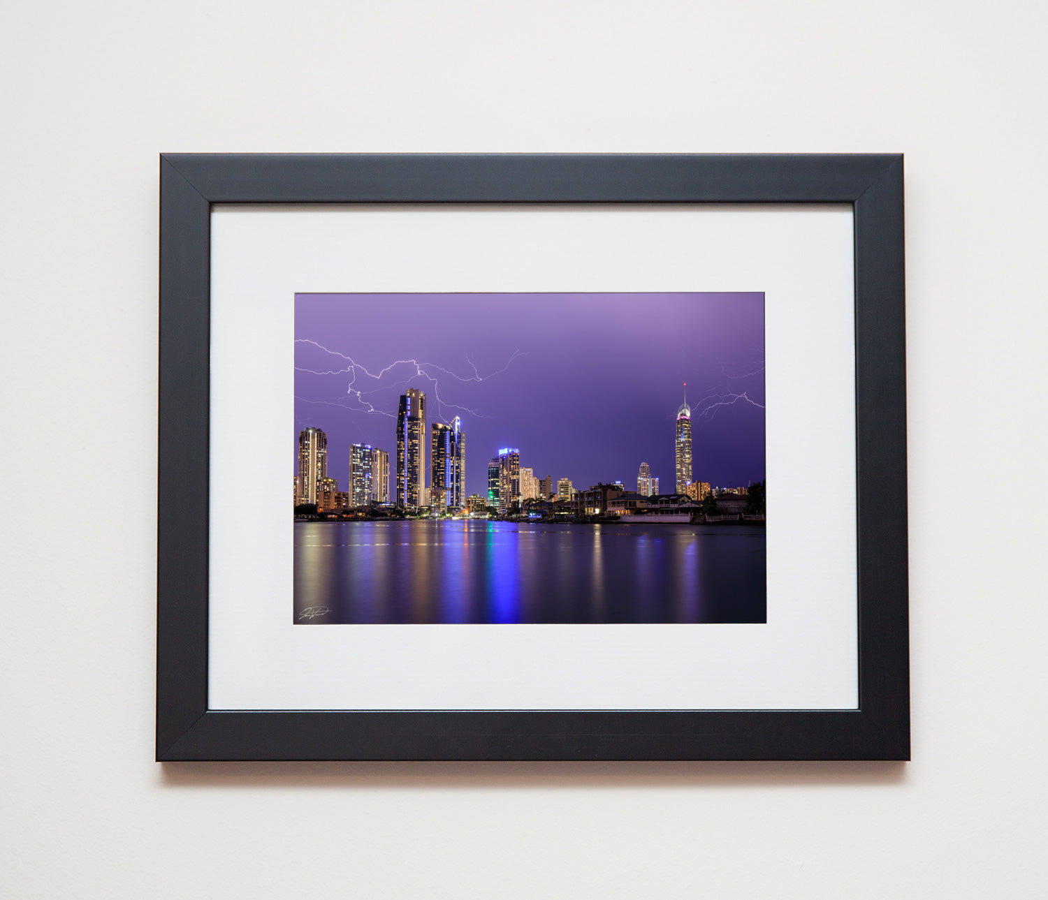 Photos are printed on high-quality 250gsm Metallic Pearl paper & then mounted on acid-free foam core. A custom cut timber frame is then added along with glass. Professionally finished on the back with a tape seal & plastic coated hanging wire.