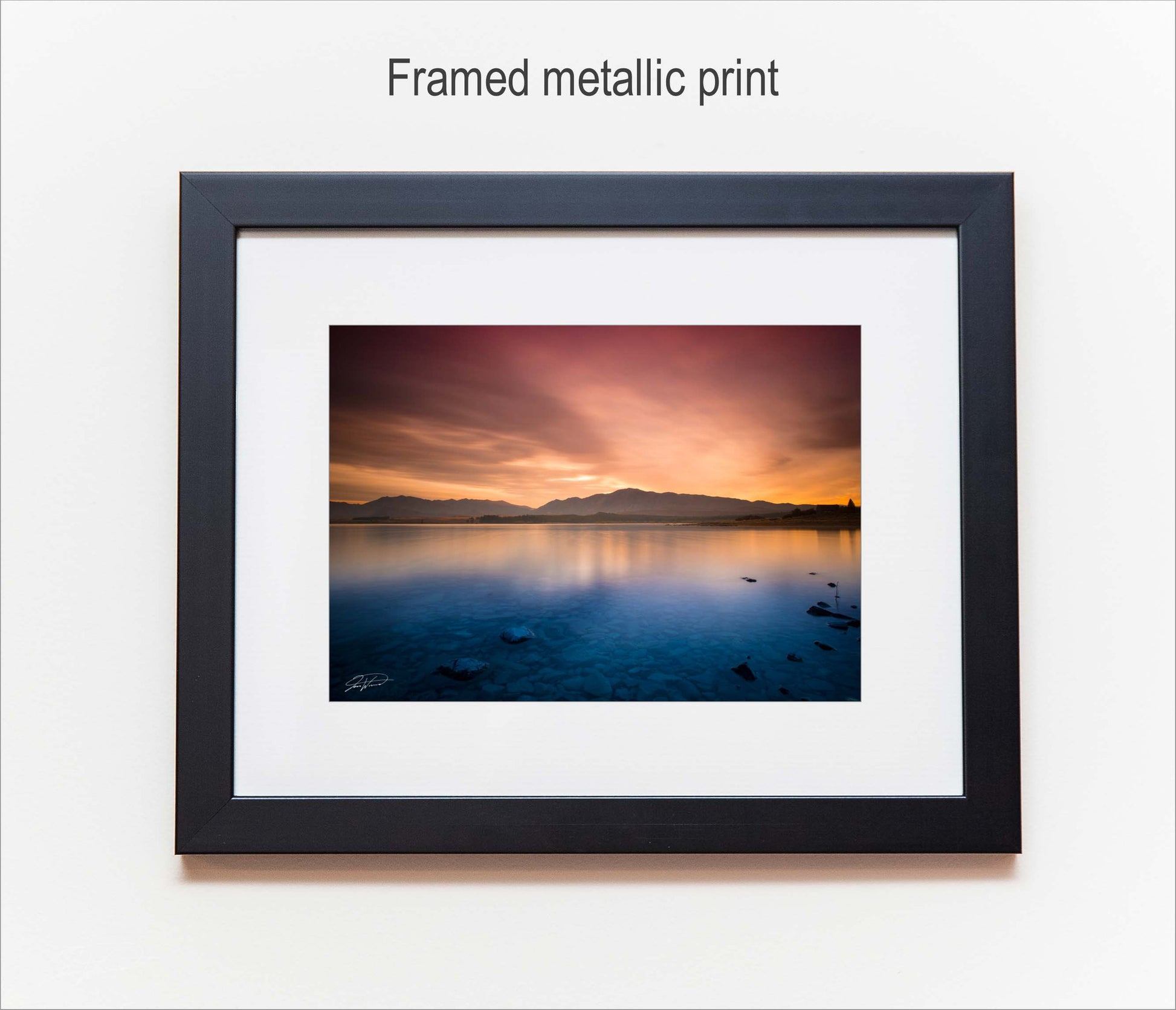 For our large framed metallic prints please note no mat board is fitted due to the size of the photograph, instead the photograph is printed with a coloured boarder of your choice (standard is white) allowing for similar effect to the mat board.