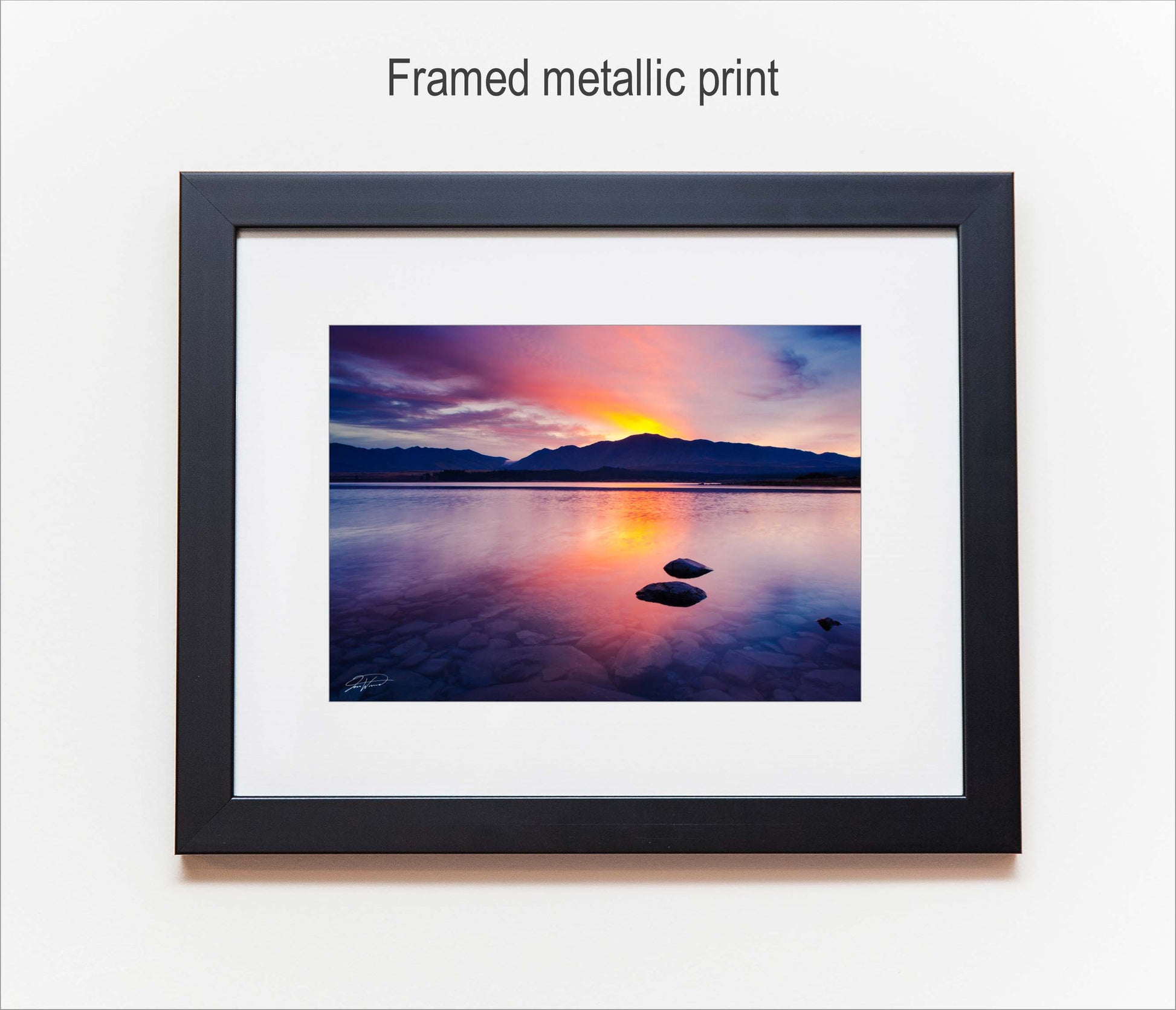 For our large framed metallic prints please note no mat board is fitted due to the size of the photograph, instead the photograph is printed with a coloured boarder of your choice (standard is white) allowing for similar effect to the mat board.