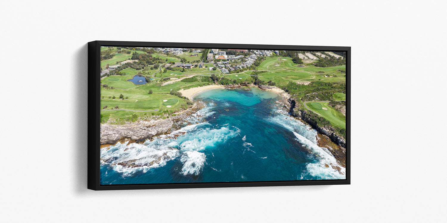 For the lover of surf, golf and photography. This stunning print has it all. From the lush greens of the golf course, to the beautiful blue hues of the ocean. Captured during a doors off helicopter flight.