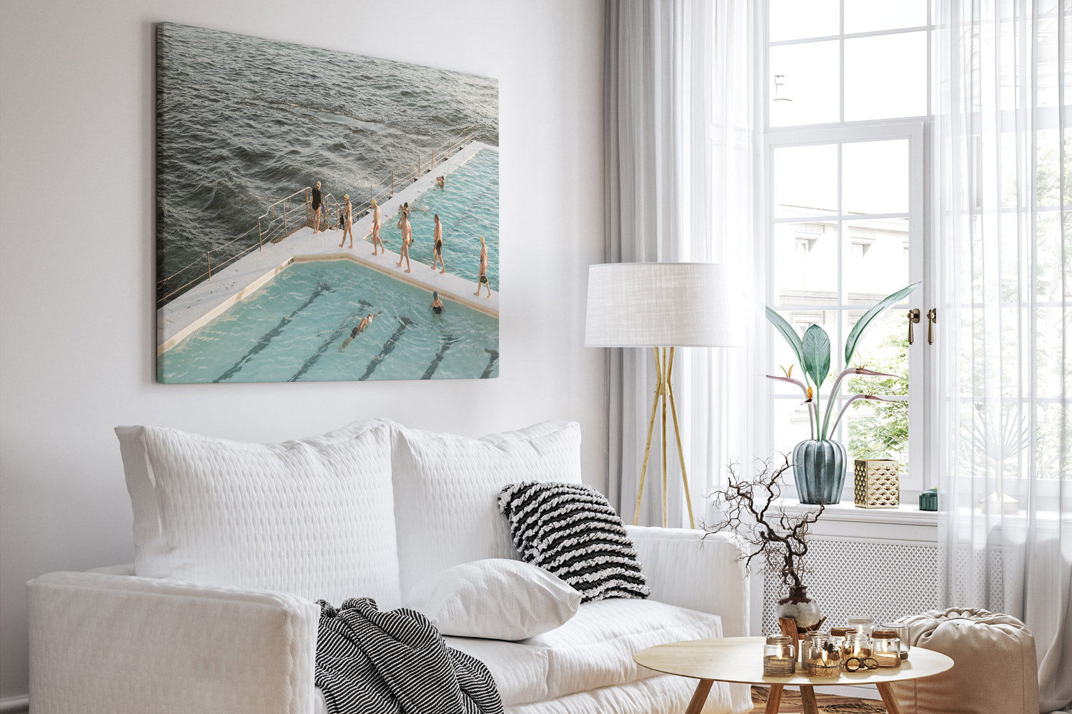 Each canvas is then sprayed with a liquid laminate, which not only enhances colour but also protects against UV fading, dust, minor scratches & water. Then expertly gallery wrapped over a stretcher bar made from quality Australian pine & finished with a tape seal backing & plastic coated hanging wire.