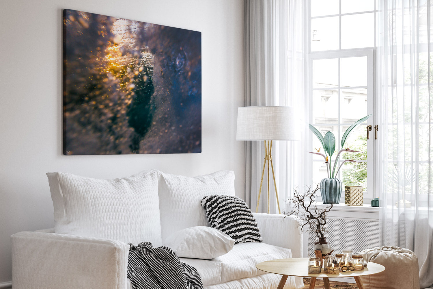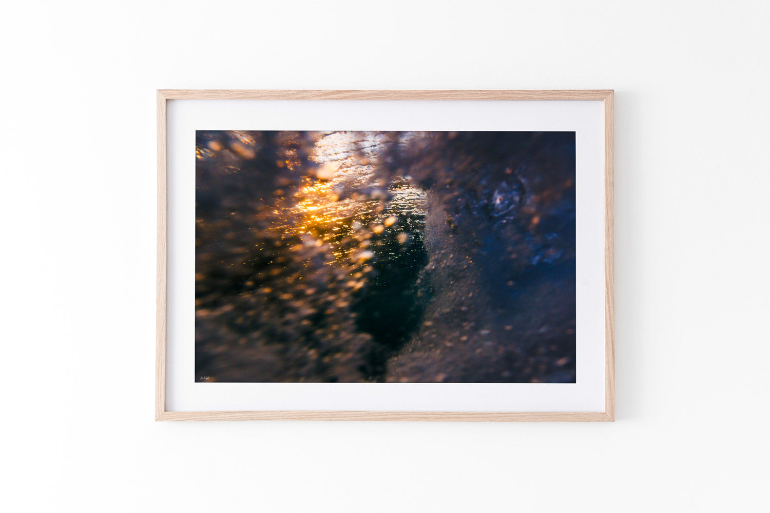 The ocean plays its own game of hide and seek in Peekaboo, where the rising sun filters through the surface, creating an effect reminiscent of stained glass. Bubbles from a passing wave dance in the foreground, while a perfectly placed opening—like a window into another world—reveals the golden glow beyond. Light and water collide in this surreal moment, blurring the line between the familiar and the unknown.