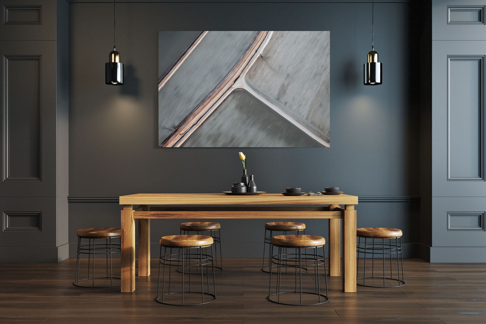 Salt ponds is an earthy natural toned image with a focus on shapes and leading lines. The brushed look is formed naturally along the salt ponds.