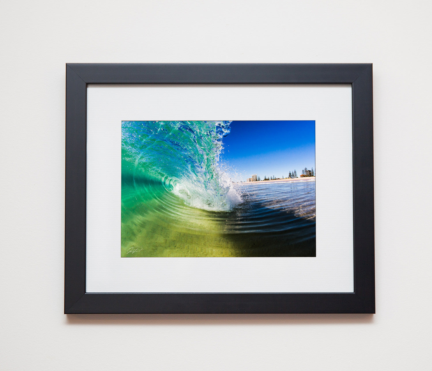 Photos are printed on high-quality 250gsm Metallic Pearl paper & then mounted on acid-free foam core. A custom cut timber frame is then added along with glass. Professionally finished on the back with a tape seal & plastic coated hanging wire.