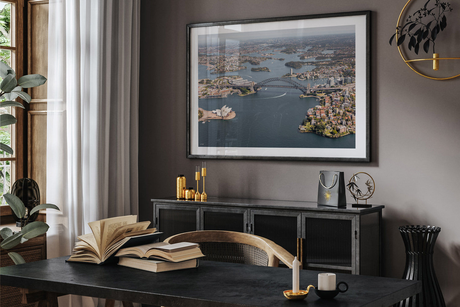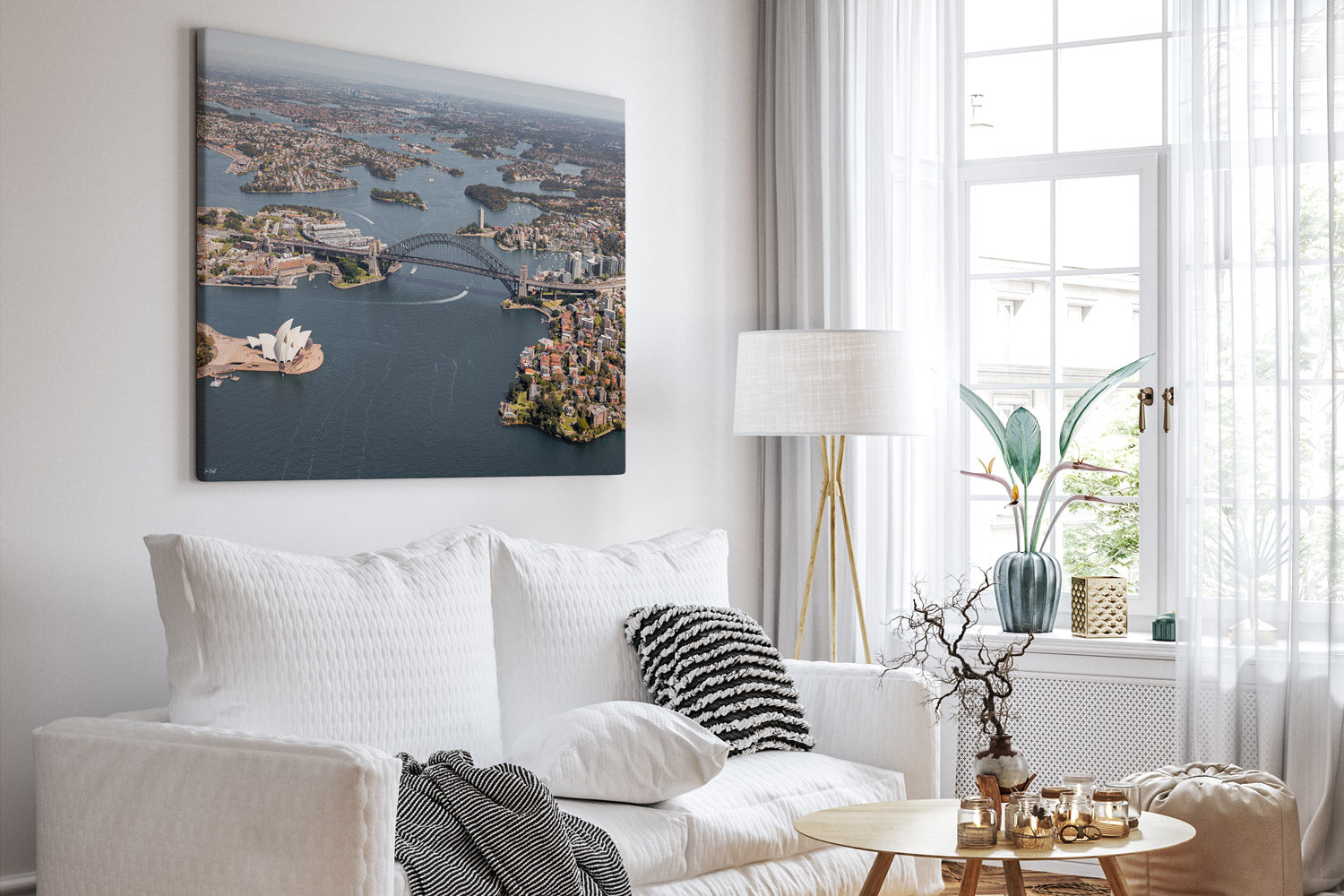 Bring the beauty of Sydney’s iconic skyline into your home with Sydney Harbour Aerial Print II. Captured from above, this fine art photograph features the Sydney Opera House and Harbour Bridge bathed in soft, muted tones as the sun drifts westward. The tranquil palette and elevated perspective create a timeless piece of Sydney wall art, perfect for coastal homes, modern interiors, or anyone with a love for Australia’s most famous harbour.
