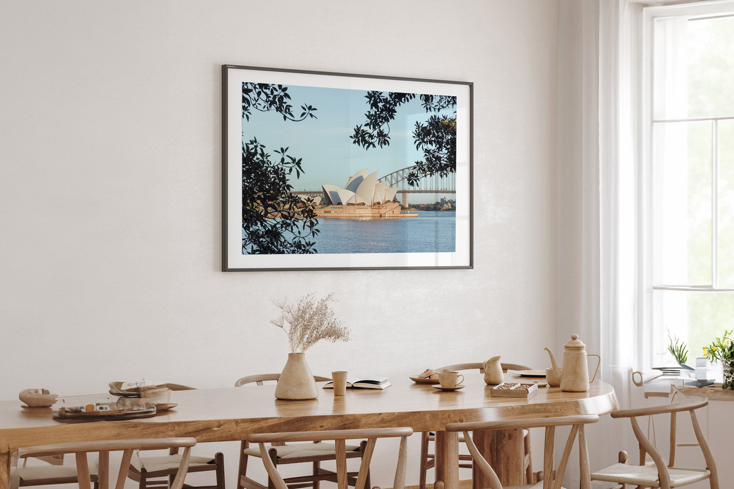 Photographed from Mrs Macquaries Chair, Sydney Opera House View II presents a softer interpretation of Sydney’s most iconic landmark. Captured in early morning light and finished with a muted colour palette, this fine-art landscape highlights the Opera House with subtle tones and gentle reflections across the harbour.