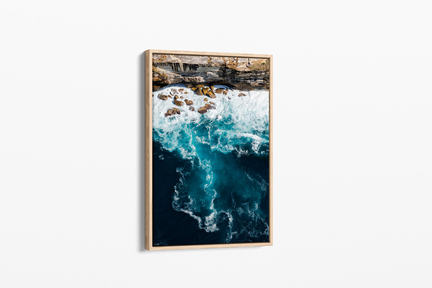 Printed on premium fine-art materials, this piece brings a sense of scale, calm, and adventure to any space. Perfect for lovers of the Australian coastline, aerial photography, and dramatic ocean textures.