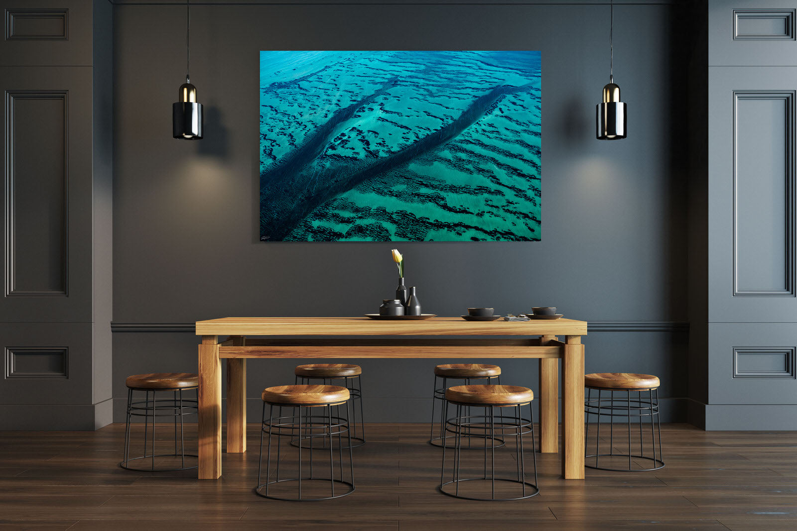 Tiger stripes is a stunning display of aerial art photography. With its unique colours this piece of wall art is perfect for your beach house or interiors with a modern look.