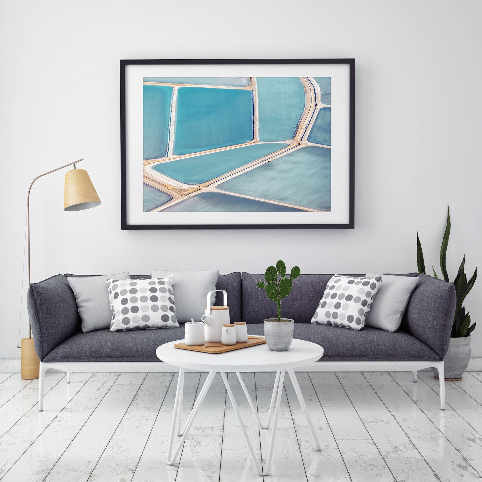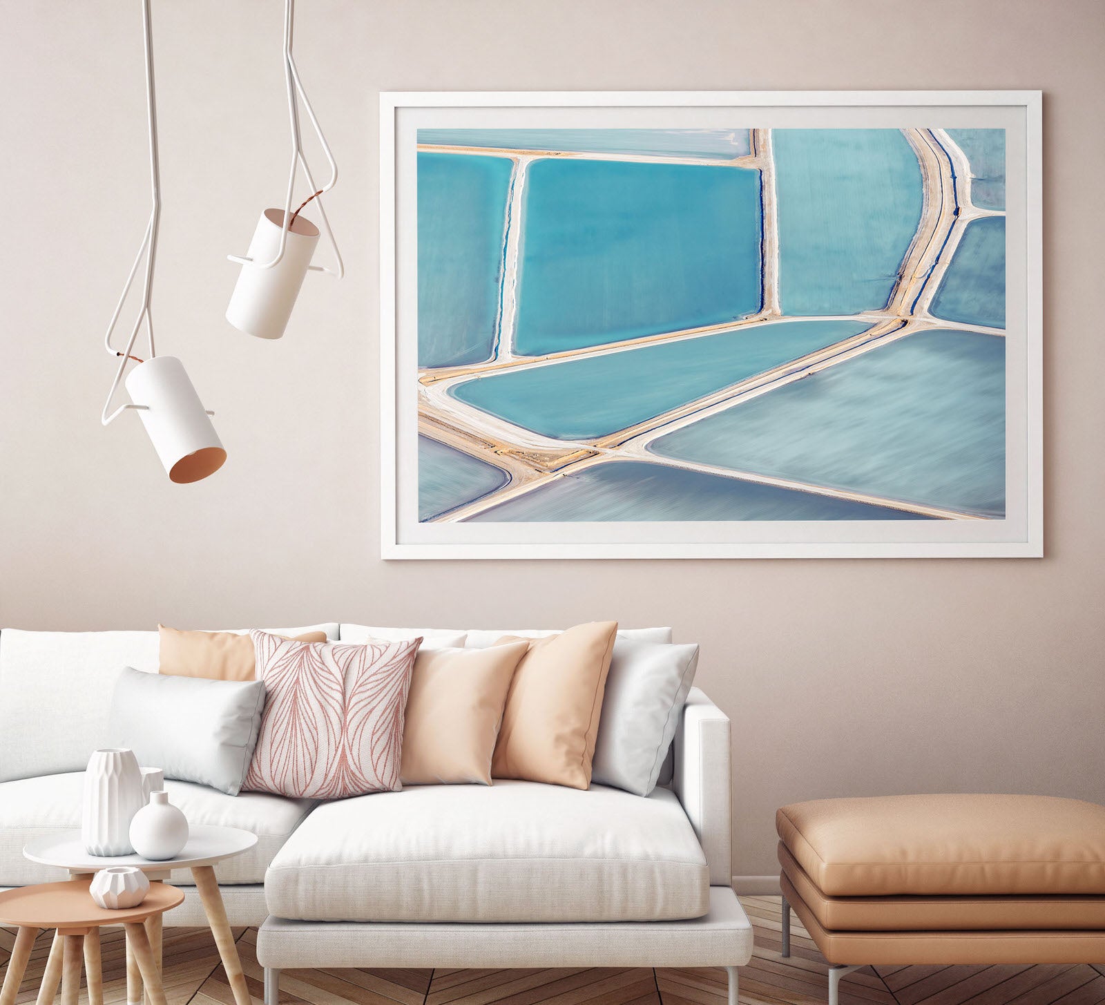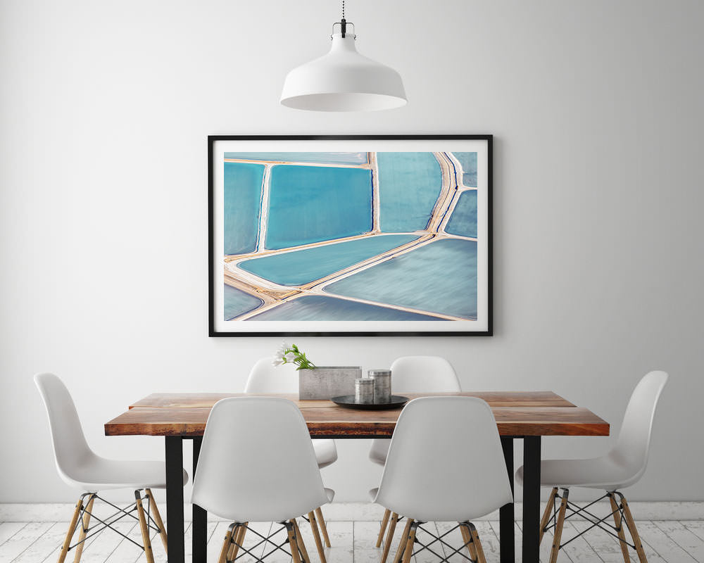 Useless loop offers for an interesting abstract piece for your wall. The brushed look of the salt ponds is naturally occurring due to the nature of how the salt is harvested.