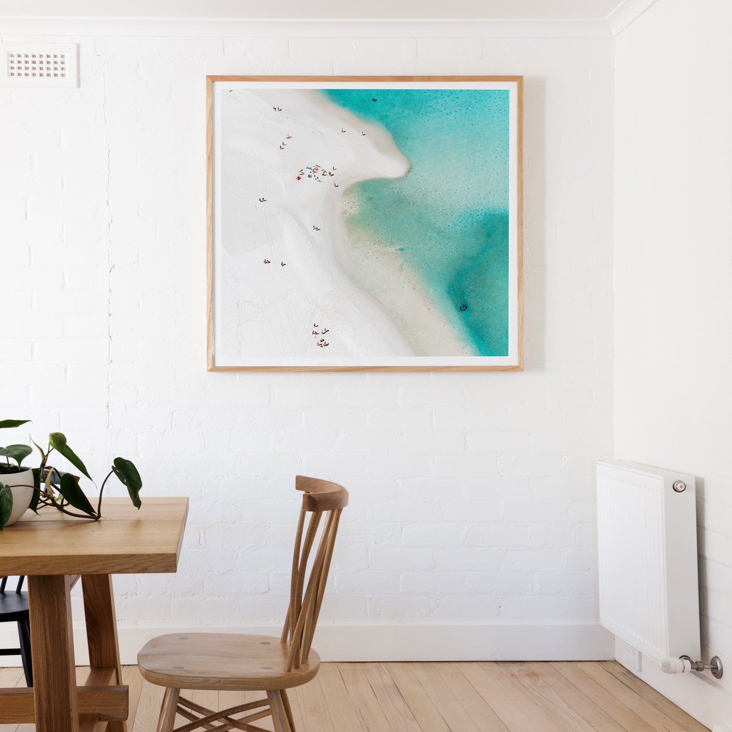 Whitehaven Beach is a popular tourists spot for many travelers coming to Australia. With its pristine 99% white silica sand it's no wonder so many people travel here to enjoy the beautiful turquoise waters and sun. This square print has the beautiful detail of footsteps in the sand.